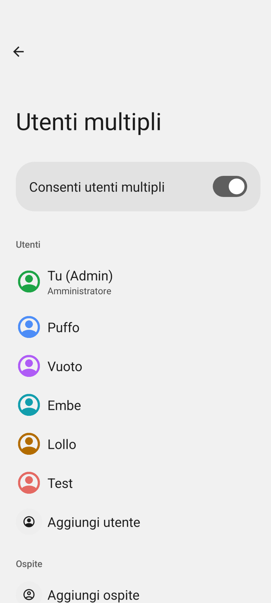 Il multi-utente sugli smartphone Android comuni è utilizzabile ma non è molto comodo. GrapheneOS, per esempio, potenzia il multi-utente e lo rende un po' più pratico da utilizzare. Per attivarlo (sia che ti trovi su GrapheneOS o su un altro sistema operativo alternativo) ti basta andare in Sistema → Utenti multipli → attivare l'interruttore in alto.
