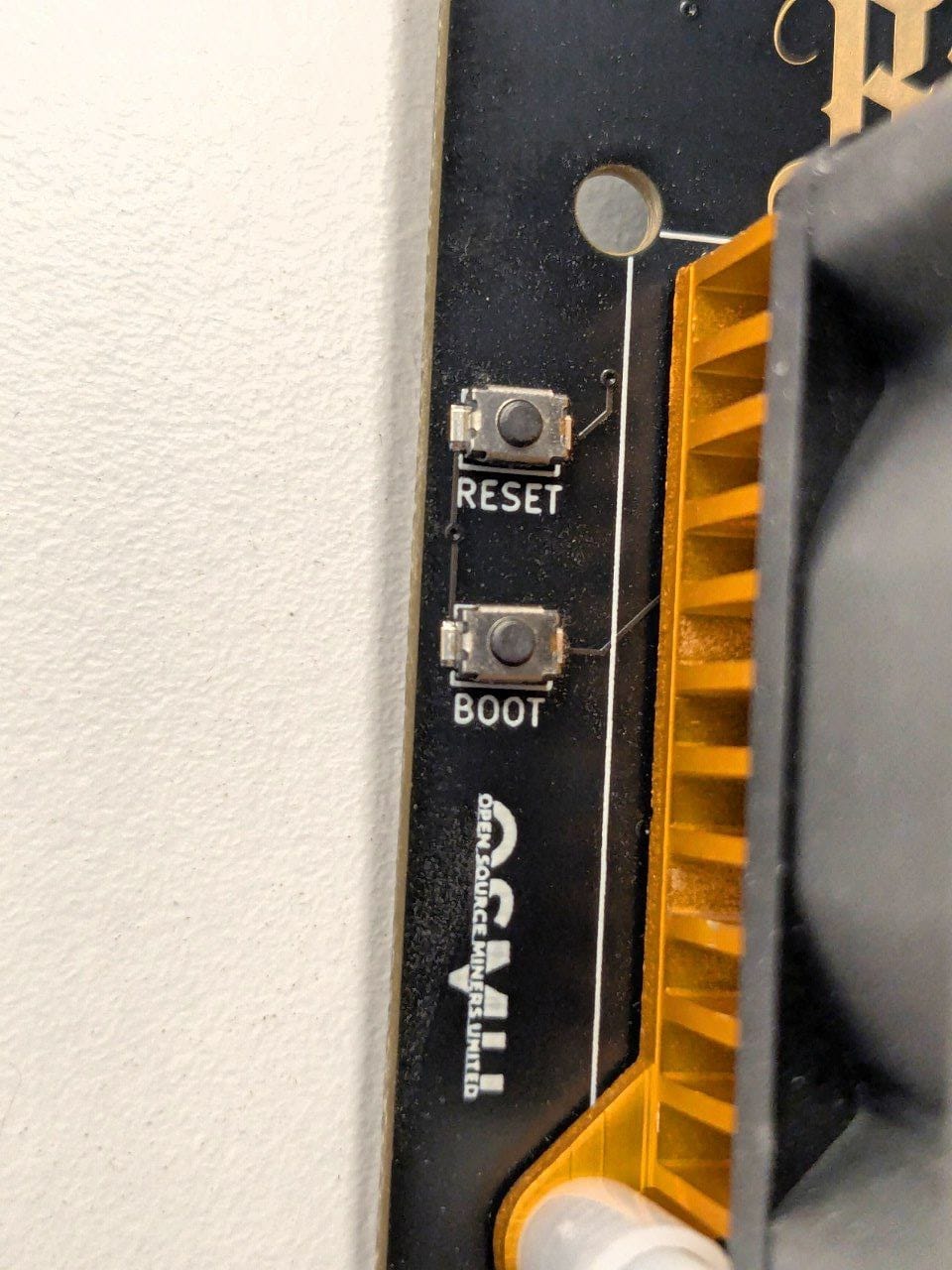 Prova con tasto reset, e se non va neanche quello usa il cavo USB-C per connettere il Bitaxe al computer e vai sul web-flasher per ripristinare (o aggiornare) il firmware. Questo dispositivo condivide l'hardware ESP32 e quindi c'è già parecchio sviluppo dietro, puoi trovare più info nella pagina GitHub di skot.
