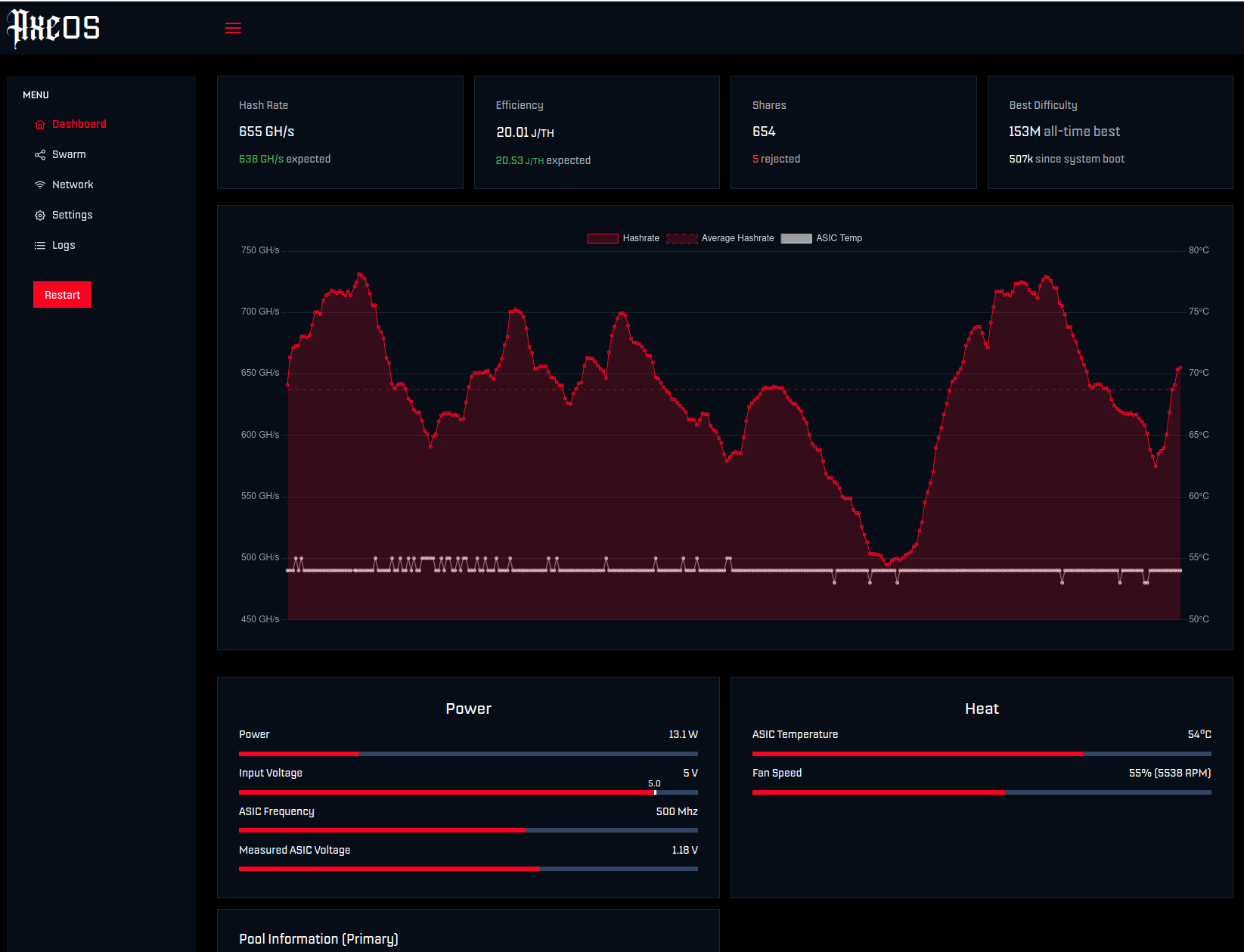 All'interno dei siti dei rispettivi pool, puoi vedere le statistiche del tuo miner semplicemente inserendo il tuo indirizzo btc, configurato prima su AxeOS.