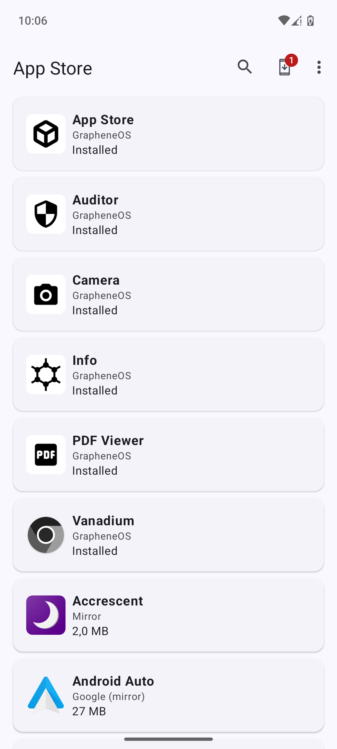 Verifica periodicamente se gli aggiornamenti automatici funzionano oppure ogni X giorni ricordati di andare manualmente ad aggiornare le app. Le applicazioni di sistema di GrapheneOS, invece, consiglio di lasciare che si aggiornino in automatico. Le impostazioni relative ad esse si trovano nei tre puntini in alto a destra della app preinstallata: App Store."